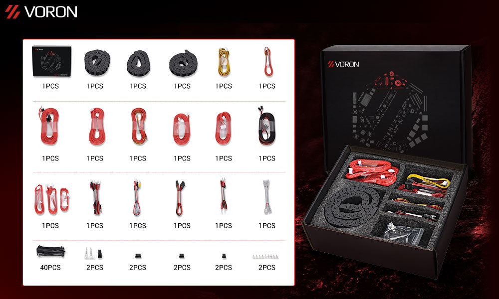 [Package Includes] Genuine Gates belts for XYZ axes; all types of Voron cables are optional.